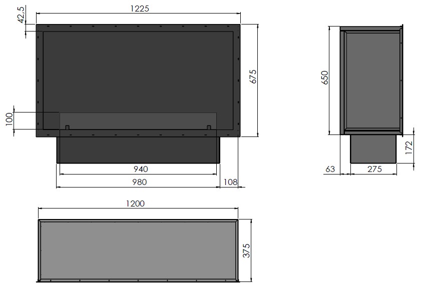 Wymiary całkowite: 1225 x 575 x 375 mm (szer x wys x gł)