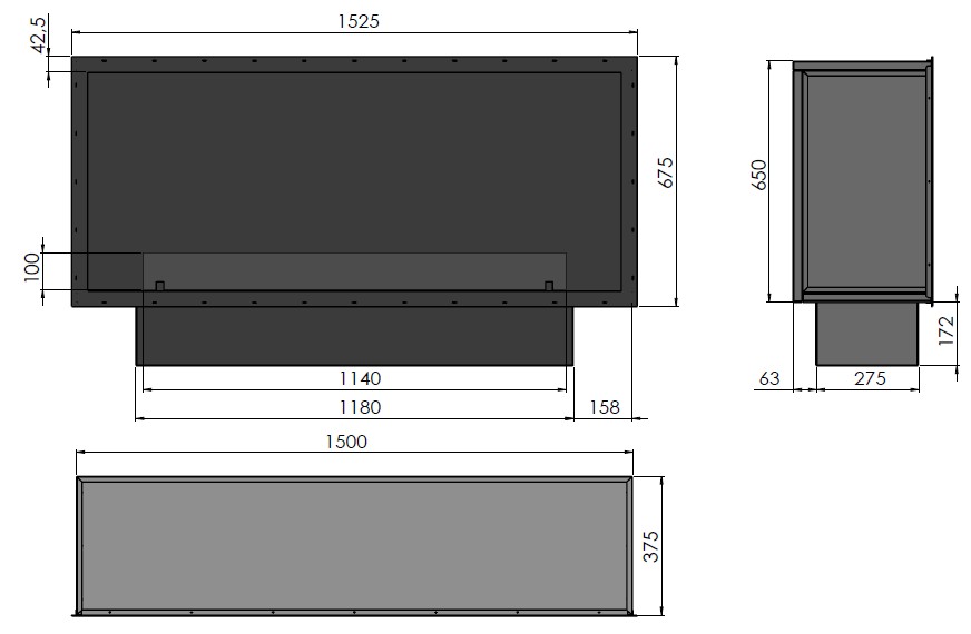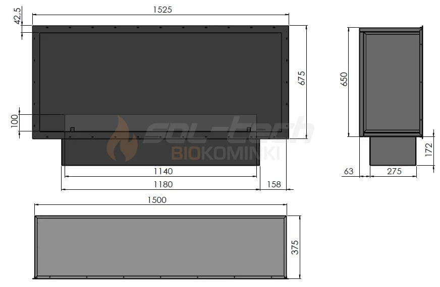 Wymiary całkowite: 1525 x 675 x 375 mm (szer x wys x gł)