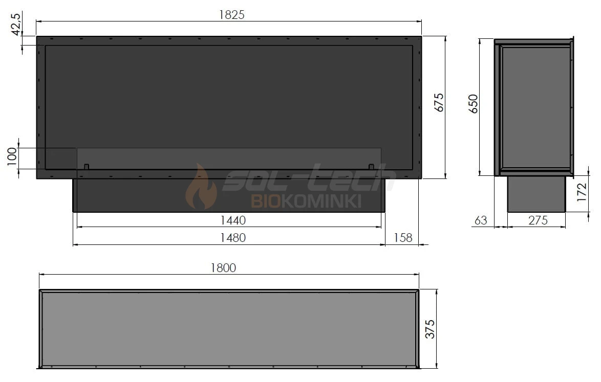 Wymiary całkowite: 1825 x 675 x 375 mm (szer x wys x gł)