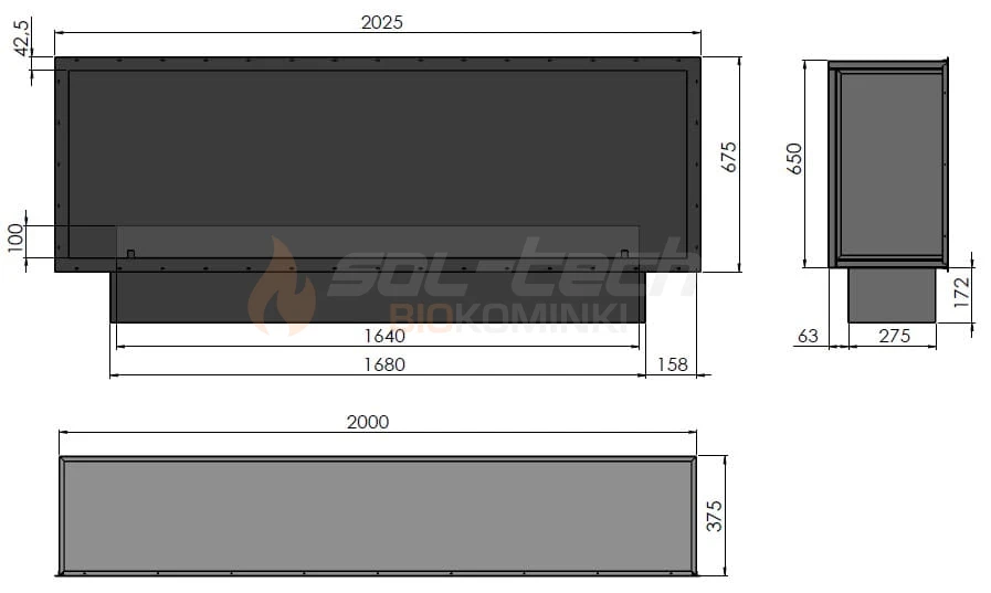 Wymiary całkowite: 2025 x 650 x 375 mm (szer x wys x gł)