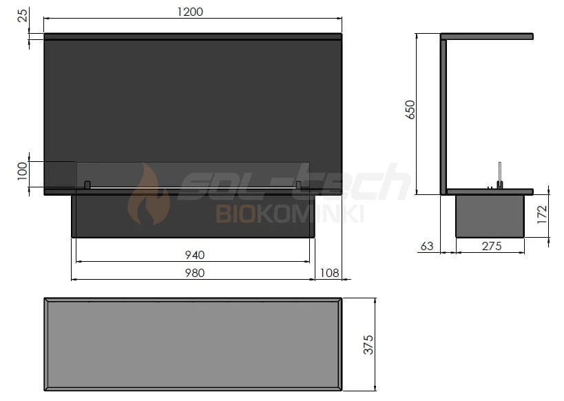 Wymiary całkowite: 1200 x 550 x 375 mm (szer x wys x gł)