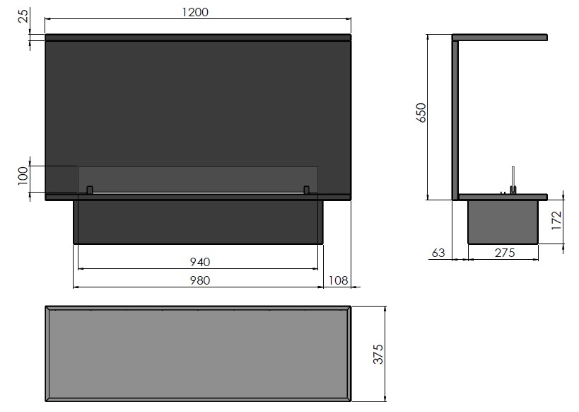 Rodzaj palnika: Biokominek automatyczny z automatycznym systemem tankowania przeznaczony do zabudowy w materiałach niepalnych