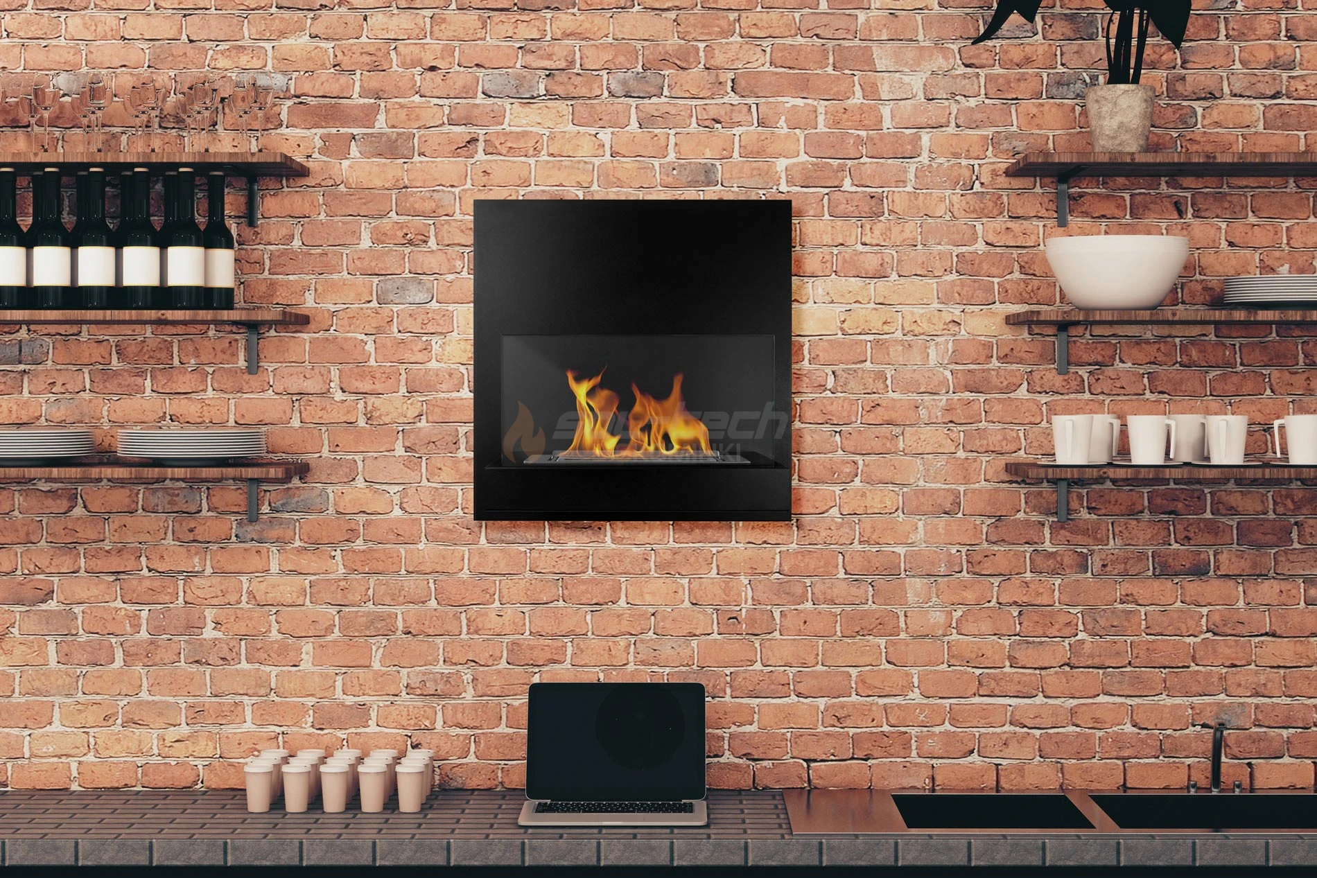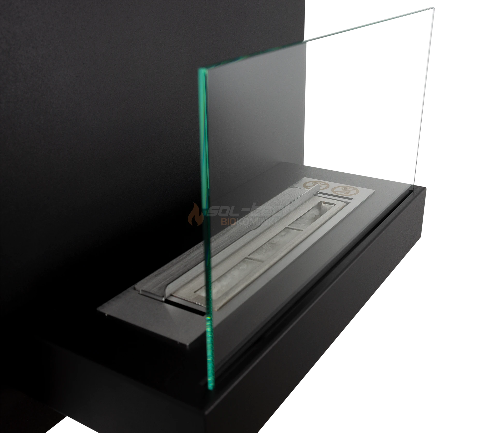 Kominek posiada konstrukcję stalową lakierowaną proszkowo farbą termoodporną. Tylna ściana jak i przednia obudowa palnika lakierowane są w kolorze czarny mat strukturalny. Waga wynosząca jedyne 4 kg pozwala na zamontowanie kominka na każdej płaskiej ścianie, również z płyt gipsowo-kartonowych.