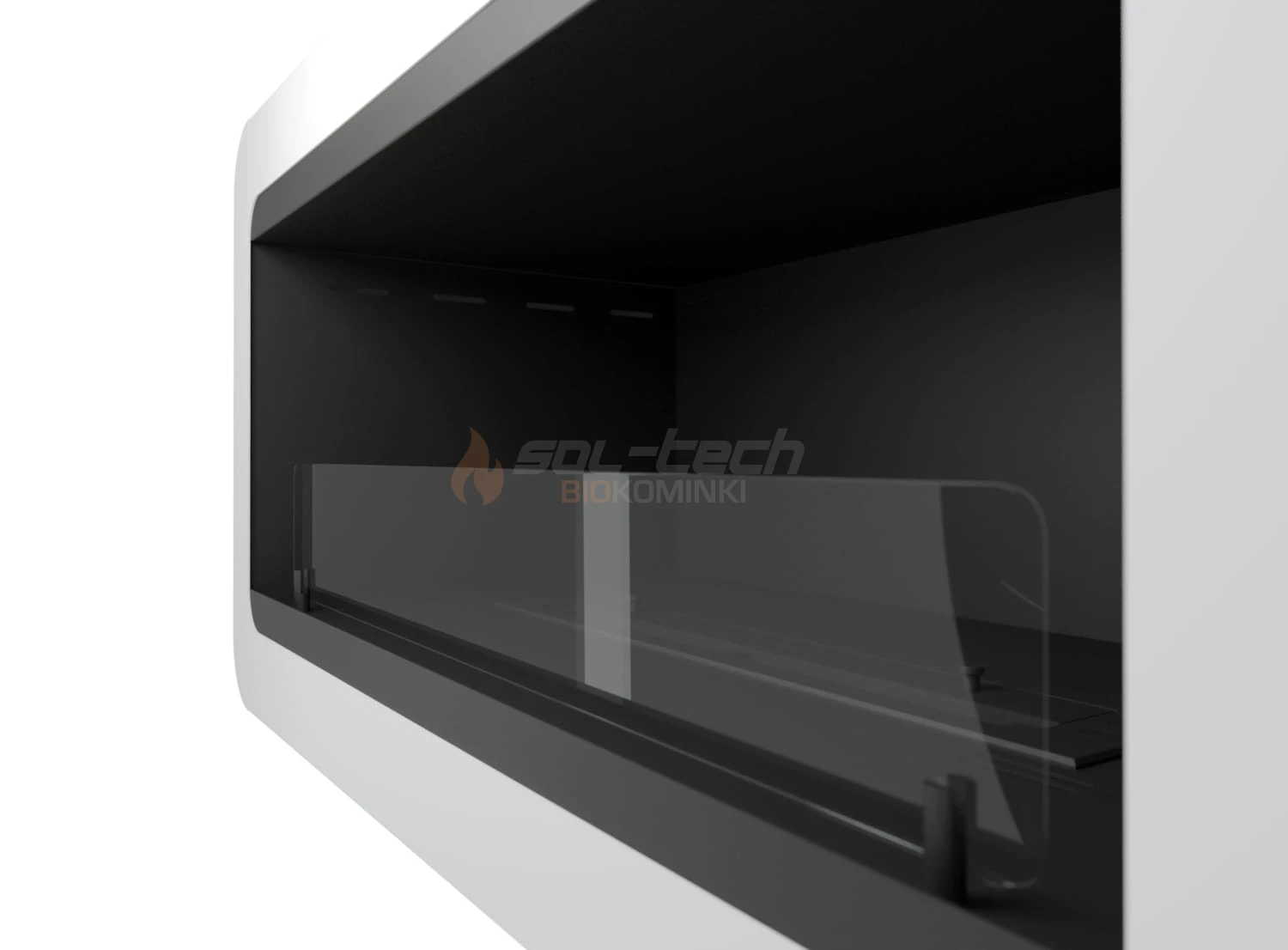 Z racji na wydzielane ciepło biokominek ten wyposażony jest w wbudowaną w ramie izolację i odpowietrzniki oddające ciepło do pomieszczenia. Przed ryzykiem ewentualnego poparzenia chroni szyba hartowana o wysokości 10 cm. Jednocześnie stabilizuje linię ognia co ma przełożenie również na długość palenia się biopaliwa.