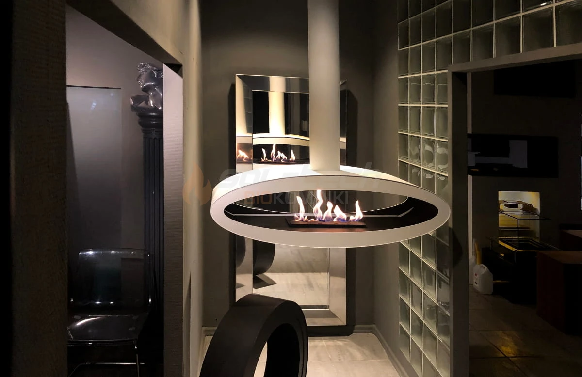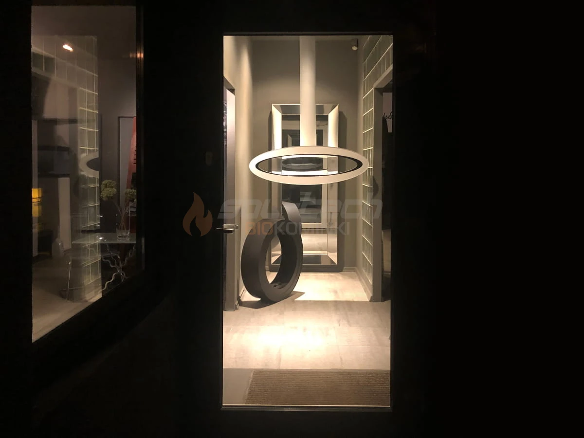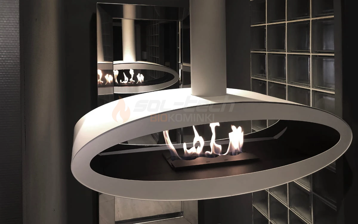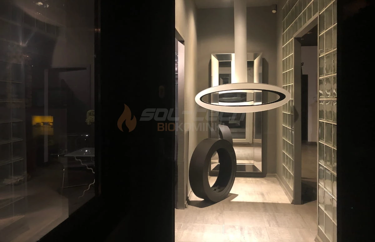 Tym samym, dzięki specjalnej rurze mocującej można zawiesić biokominek Meru na suficie.