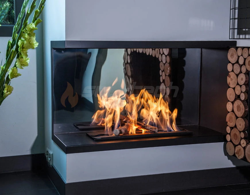 - wnętrze paleniska wykończone stalą polerowaną na efekt lustra, która potęguje wygląd płomieni i zapewnia jeszcze lepszy efekt wizualny
