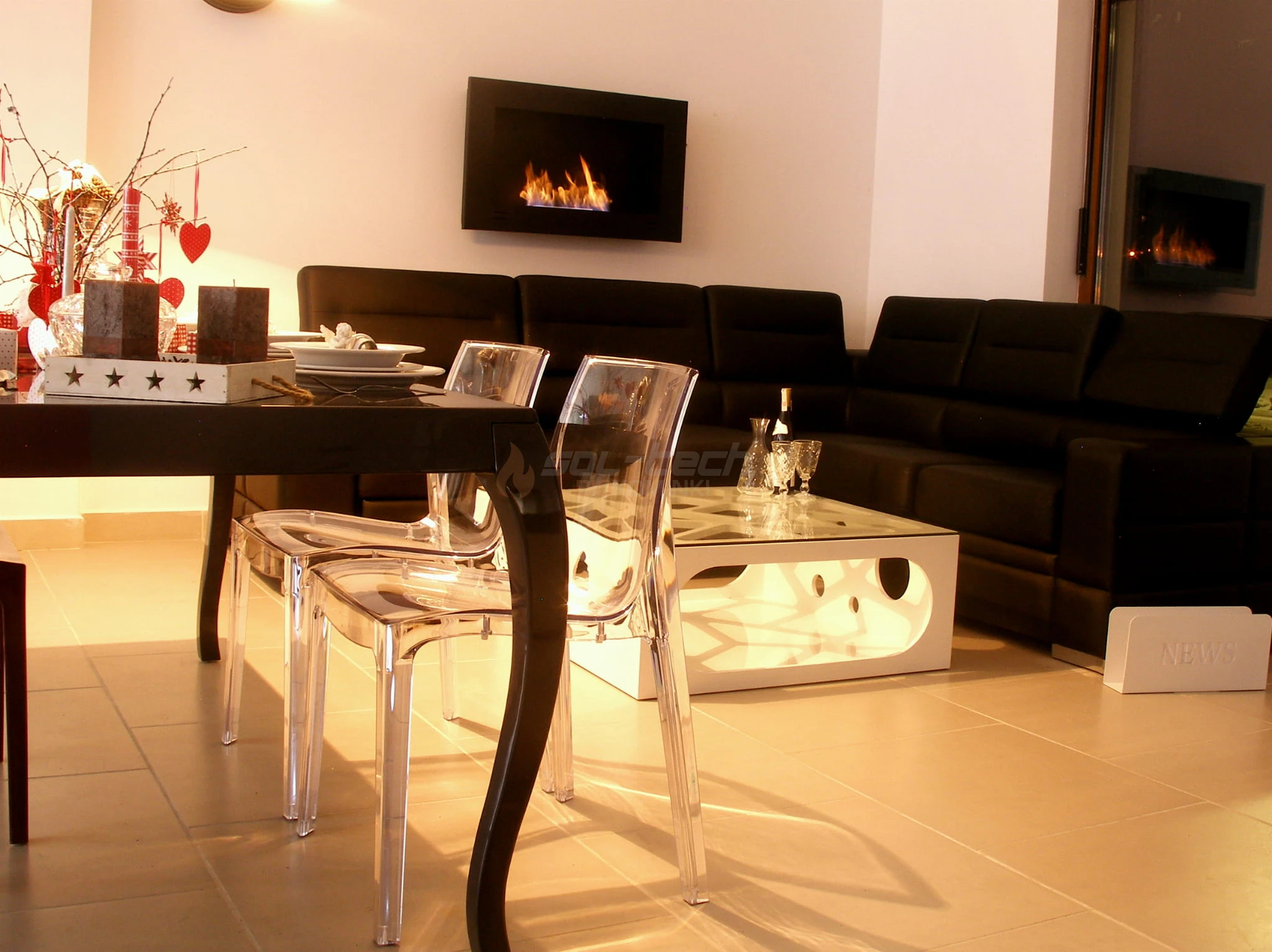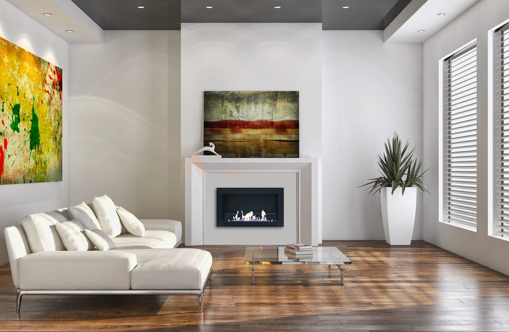 Szyba ochronna zabezpiecza przed ryzykiem przypadkowego kontaktu z ogniem nie utrudniając jednocześnie sterowania biokominkiem. Dzięki nowatorskiemu rozwiązaniu eleganckich, chromowanych mocowań, szyba nie wystaje poza obręb obudowy biokominka i jest z nią zlicowana.