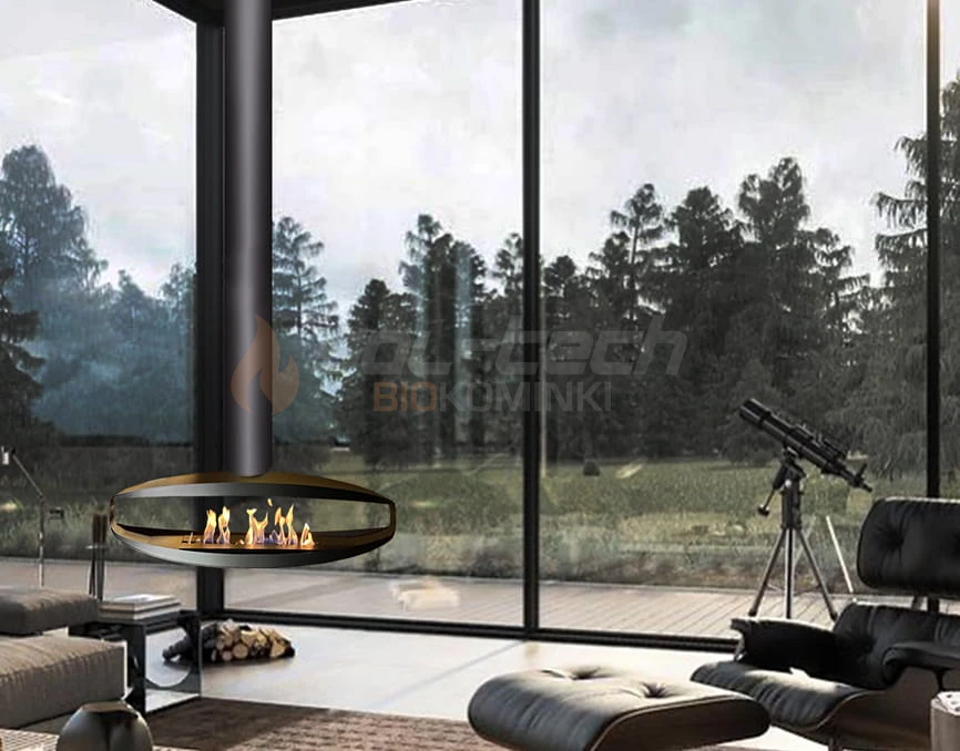 Tym samym, dzięki specjalnej rurze mocującej można zawiesić biokominek Hualalai na suficie.