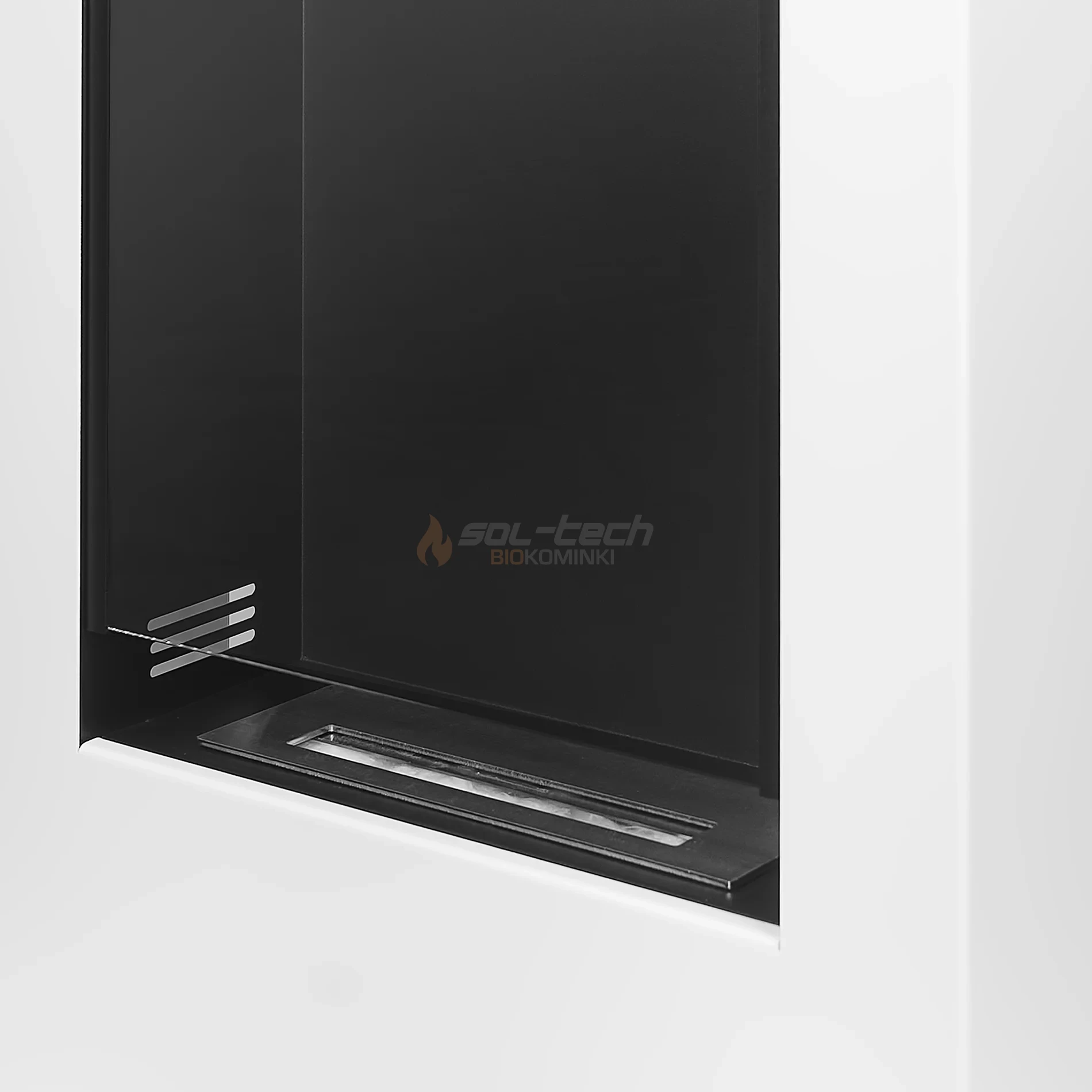 Dzięki odpowiedniej wysokości i grubości 4 mm szyba doskonale osłania płomień, podnosząc komfort oraz bezpieczeństwo podczas użytkowania.W trakcie użytkowania biokominka nie ma konieczności demontażu szyby. Pozostawiona na dole szczelina pozwala na odpowiednią cyrkulację powietrza niezbędną do podtrzymania płomienia oraz jednocześnie na swobodną regulację czy zagaszanie płomienia.