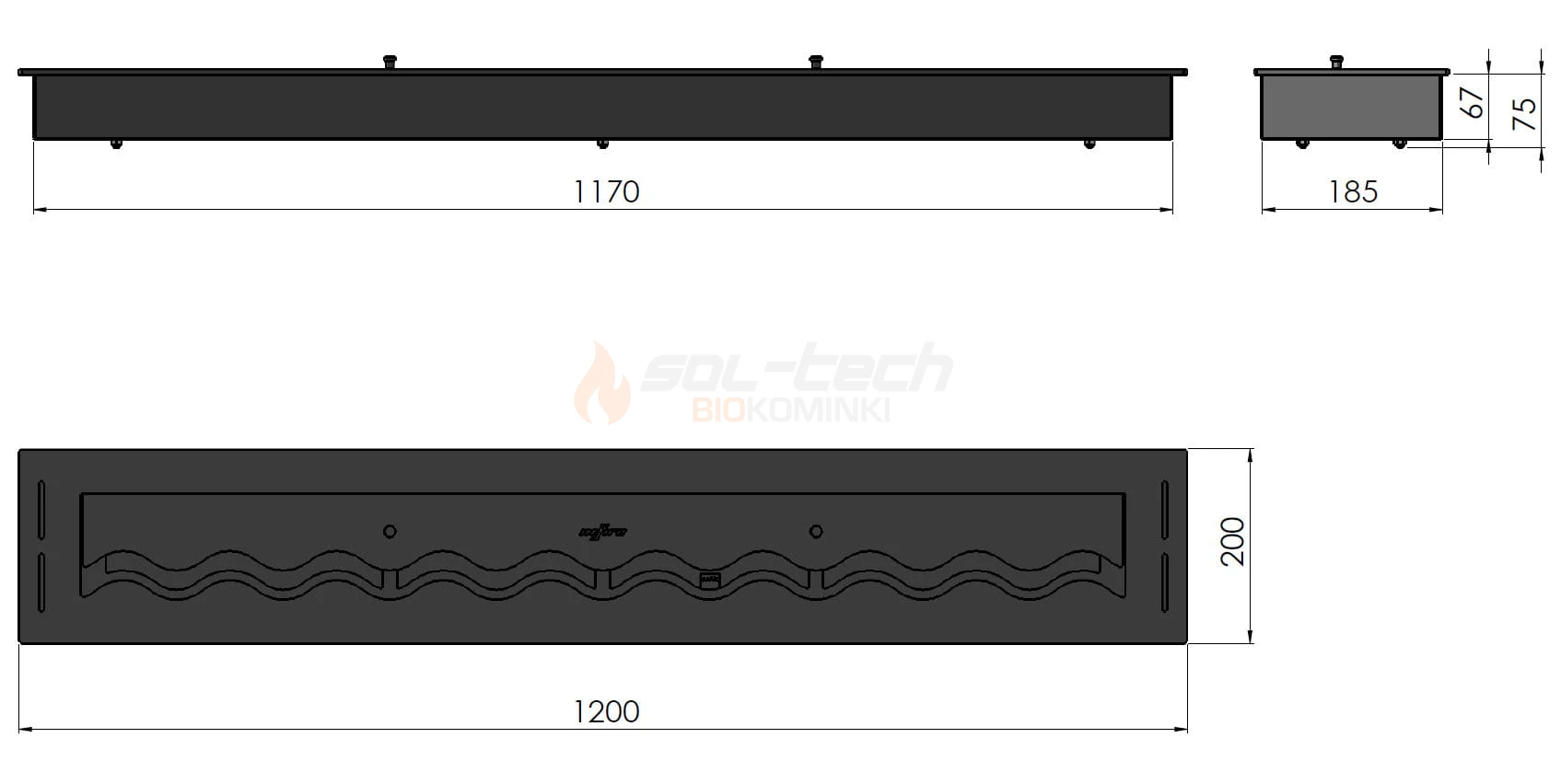 Palnik (wkład) na biopaliwo Slim Line Burner 1200 Black to produkt charakteryzujący się najwyższą jakością wykonania i zapewniający widowiskowy ogień z możliwością regulacji wysokości. Wykonany w całości z wysokogatunkowej stali malowanej farbą termoodporną w kolorze czarnym matowym, z wylotem palnika w kształcie fali. Pojemność palnika wynosi 5 l, dzięki czemu zapewnia możliwość delektowania się widokiem ognia przez nawet do 5 h.