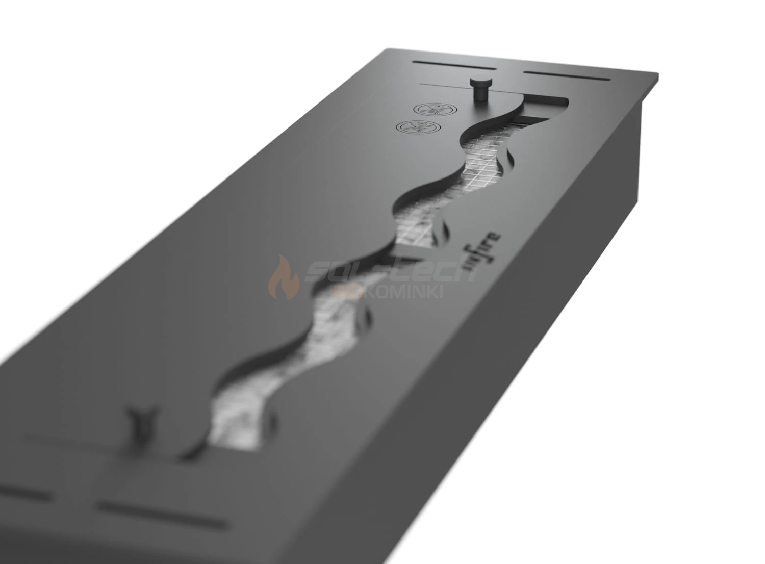 Za precyzyjną regulację wysokości płomieni oraz możliwość wygaszenia palnika w dowolnym czasie odpowiada ruchoma zasuwa w kształcie fali. Falowany wylot rozciąga efektownie płomień na całej szerokości palnika zapewniającym przy tym efekt płomieni 3D.
