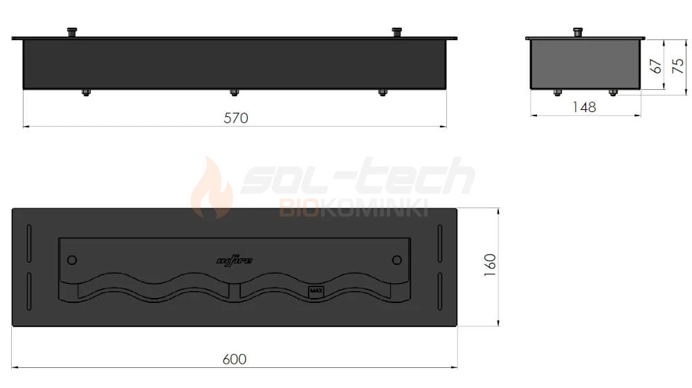 Palnik (wkład) na biopaliwo Slim Line Burner 600 Black to produkt charakteryzujący się najwyższą jakością wykonania i zapewniający widowiskowy ogień z możliwością regulacji wysokości. Wykonany w całości z wysokogatunkowej stali malowanej farbą termoodporną w kolorze czarnym matowym, z wylotem palnika w kształcie fali. Pojemność palnika wynosi 1 l, dzięki czemu zapewnia możliwość delektowania się widokiem ognia przez nawet 2,5 h.