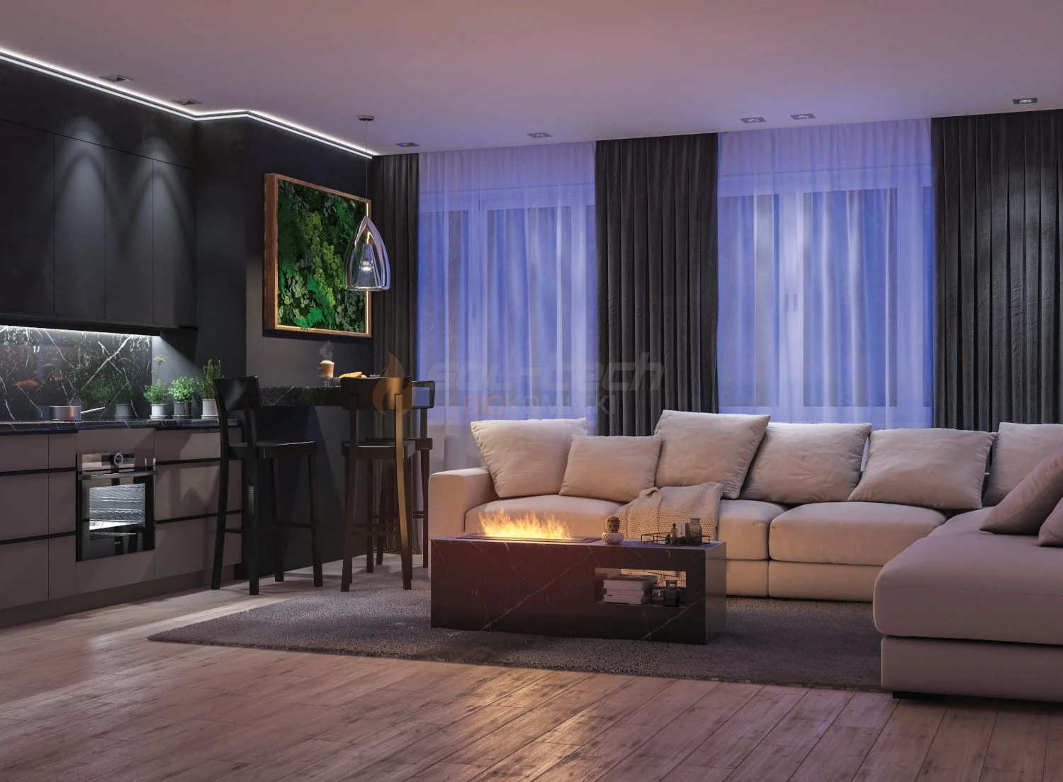 Dzięki użyciu najwyższej jakości stali czarnej palenisko będzie Państwu niezawodnie służyć przez długie lata. Dodatkowo stalowa "kasetka" zabezpiecza przed wyciekiem biopaliwa do wnętrza zabudowy.