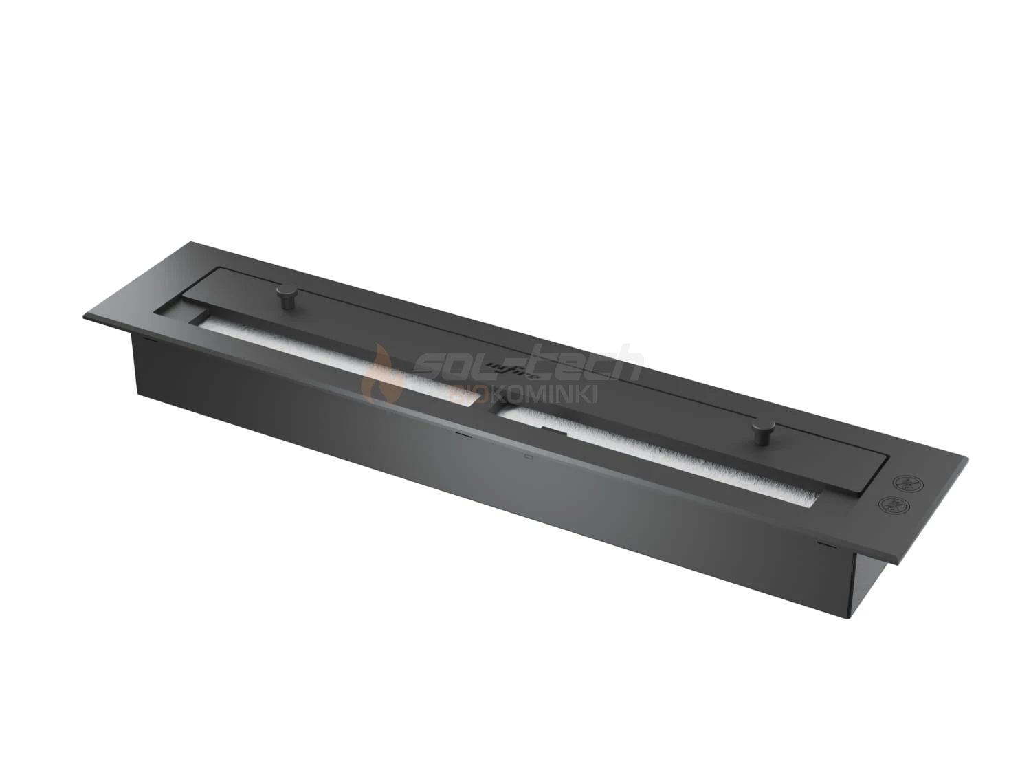 W środku wkładu Inbox znajduje się wysokiej jakości palnik Longfire 500 zapewniający długą i efektowną linię dynamicznego ognia o długości ok 45 cm. Palnik wykonany jest w całości z wysokogatunkowej stali lakierowanej na kolor czarny. Posiada bezpieczną, prostą i niezawodną regulację intensywności płomienia i możliwość szybkiego wygaszenia ognia. Czarne palniki Longfire doskonale wpisują się w nowoczesne trendy wnętrzarskie, oferując elegancki i spójny wygląd biokominka. Stal czarna, z której wykonany jest palnik Longfire nagrzewa się mniej dzięki czemu do gaszenia palnika nie potrzeba dodatkowych nakładek, a płomień gasimy zasuwą regulacyjną palnika.