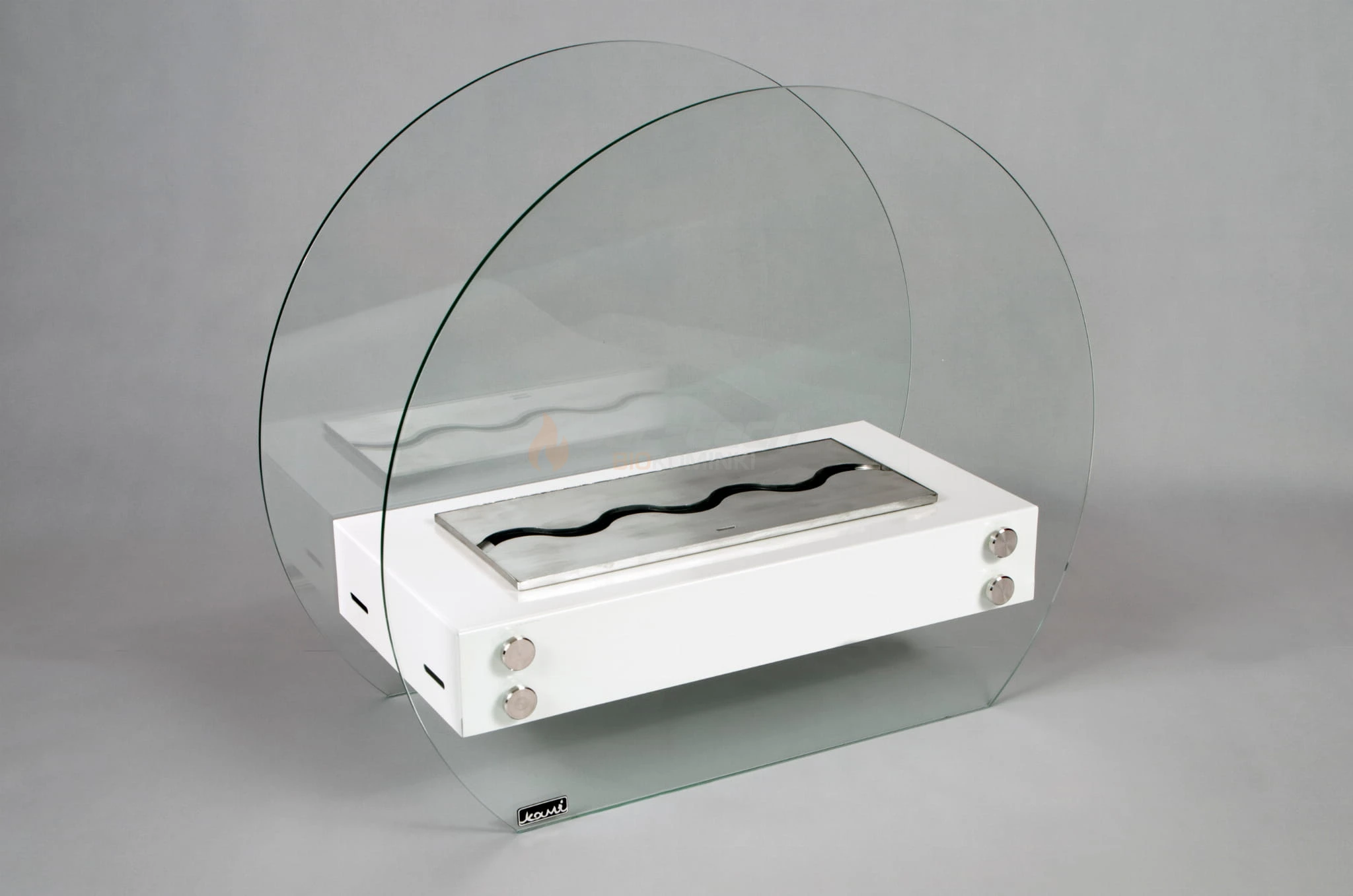Biokominek wykonany jest ze stali malowanej proszkowo farbą termoodporną. Wyposażony jest w dwie hartowane szyby podnoszące bezpieczeństwo użytkowania biokominka.