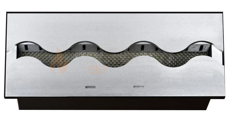 Wewnątrz paleniska znajduje się wysokiej jakości palnik Fala 370 zapewniający wysoką i efektowną linię dynamicznego ognia o długości ok 35 cm. Palnik wykonany jest w całości z wysokogatunkowej stali czarnej, natomiast górne płyty palnika wykonane są z blachy nierdzewnej lub czarnej (do wyboru), o grubości 5 mm, co gwarantuje niezawodność i całkowitą odporność na odkształcanie . Palnik posiada bezpieczną, prostą w obsłudze i precyzyjną regulację intensywności płomienia i możliwość szybkiego wygaszenia ognia. Wycinany laserowo, nowoczesny wylot palnika w kształcie fali rozciąga ogień na całej długości, oraz zapewnia bardziej dynamiczną grę płomieni niż w przypadku palników z klasycznym, prostym wylotem.