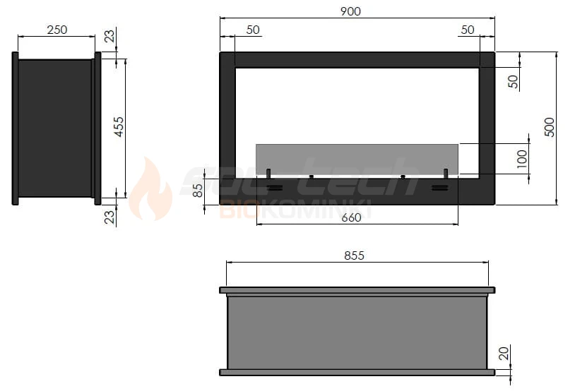 Biokominek dwustronny do zabudowy 2 SIDE 900